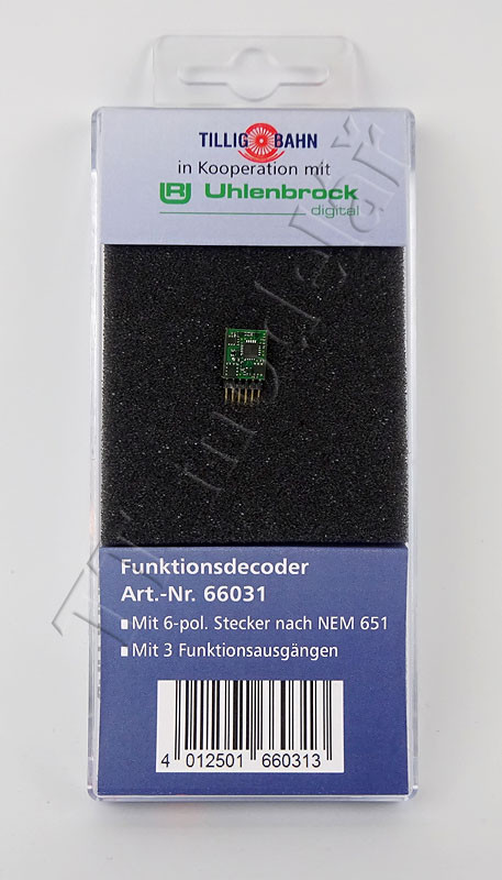 Funkční dekodér Uhlenbrock s 6pinovým konektorem dle NEM 651, Tillig 66031