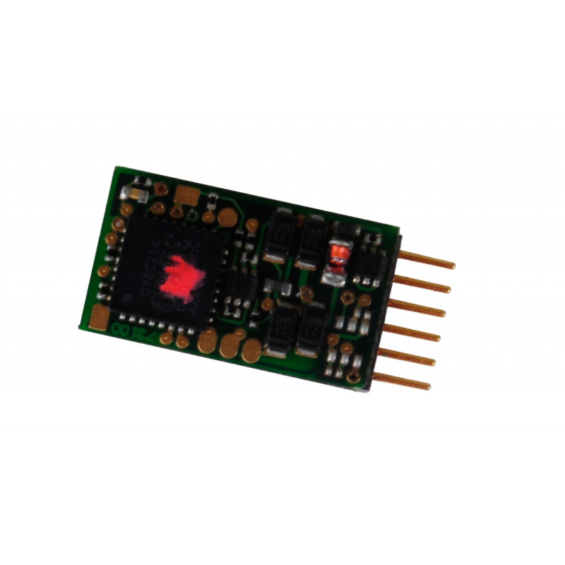 Digitální dekodér pro lokomotivy od renomovaného výrobce Uhlenbrock, dodávaný firmou Tillig. Rozměry 14,9 x 8,6 x 2,4 mm.