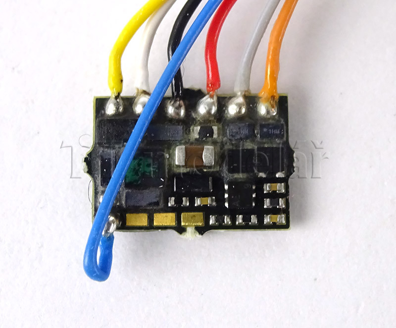 Miniaturní lokomotivní dekodér, 14 x 8 x 3,5 mm s konektorem NEM651 (6pin) na vodičích, Zimo MX622F