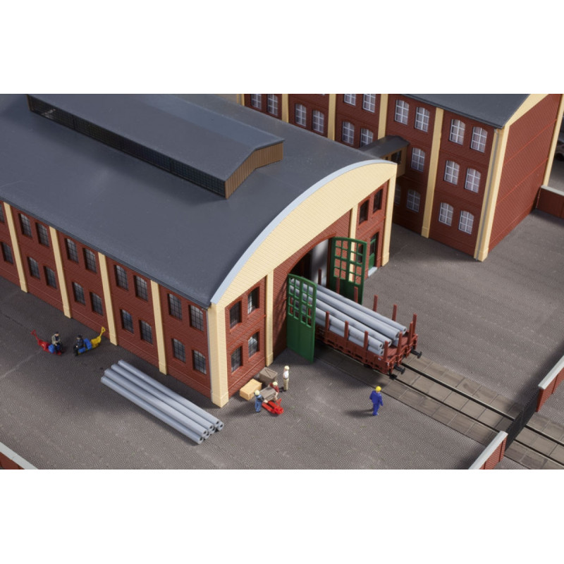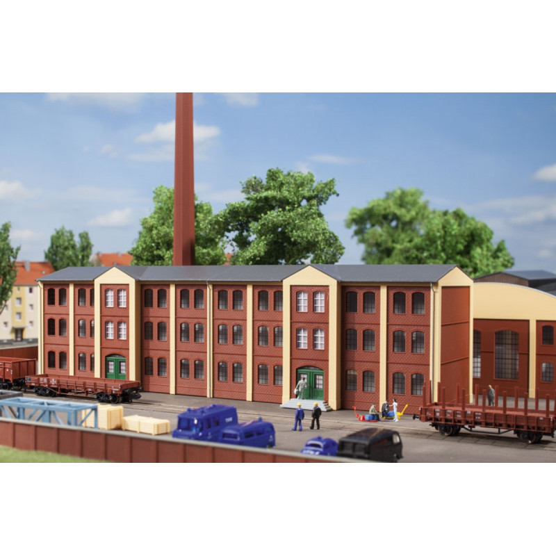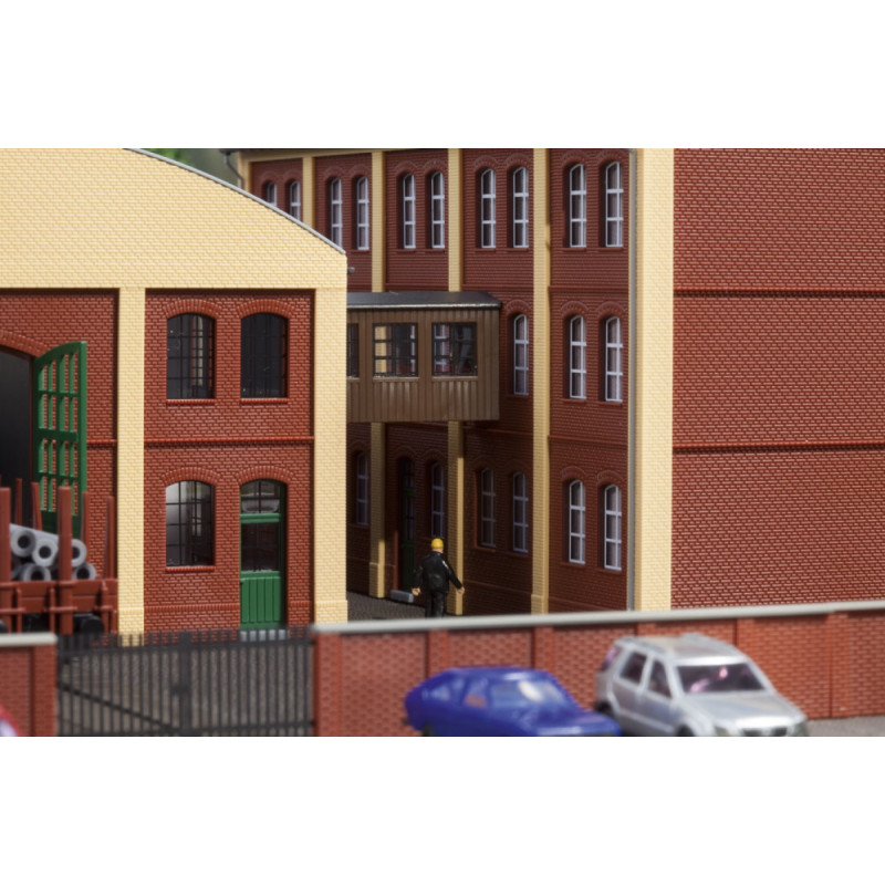 S tímto modelem můžete postavit atraktivní průmyslový komplex. Skládá se z administrativní budovy a výrobní budovy se střešními světlíky a s velkými vraty pro vjezd kolejových vozidlel. Budovy lze propojit přechodem. Součástí je i osmihranný komín.