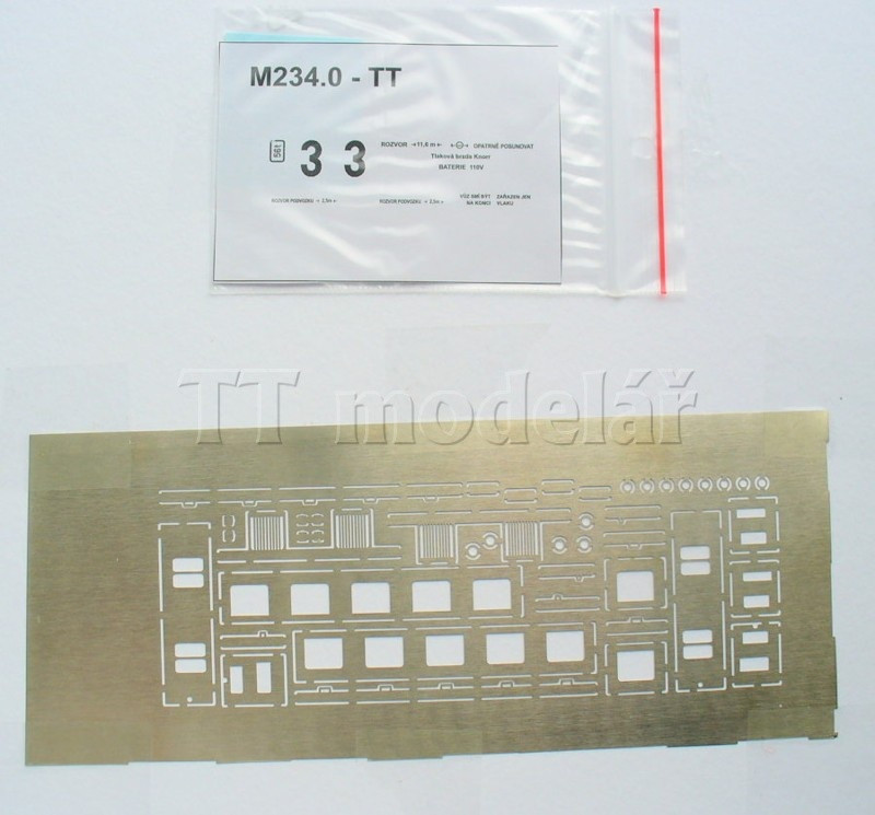 Stavebnice motorového vozu M 234.0 z leptaného plechu + obtisk s nápisy.