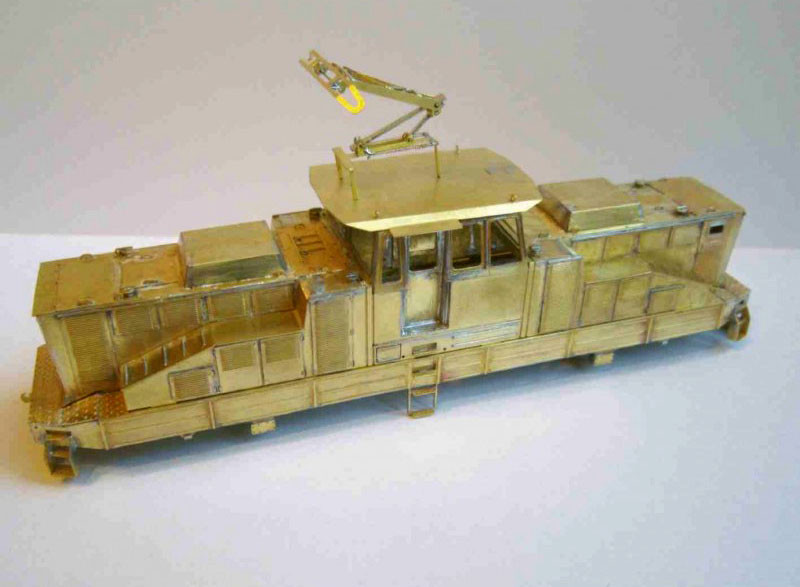 Stavebnice lokomotivy z leptaného plechu. Stavebnice obsahuje skříň, masky podvozků, sběrač a obtisk s popisem.