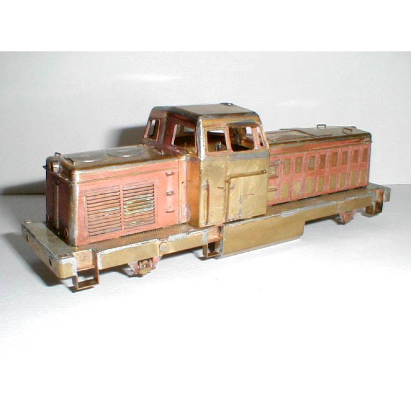Stavebnice skříně, rámu lokomotivy, masek podvozků z leptaného plechu, leptaný krablovaný plech na ochoz lokomotivy.