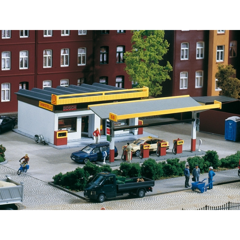 Tento typ čerpací stanice se nachází na mnoha místech Německa. Proto jsou k modelu přiloženy dekorace Minol a Shell. Budovy lze rovněž vnitřně vybavit a osvětlit.