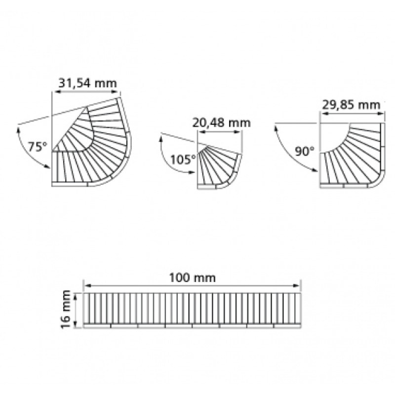 Obsah balení: 6 rovných dílů, 2 oblouky 90°, 1 oblouk 75° und 1 oblouk 105°.