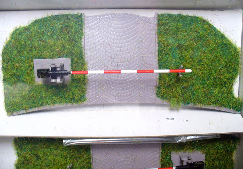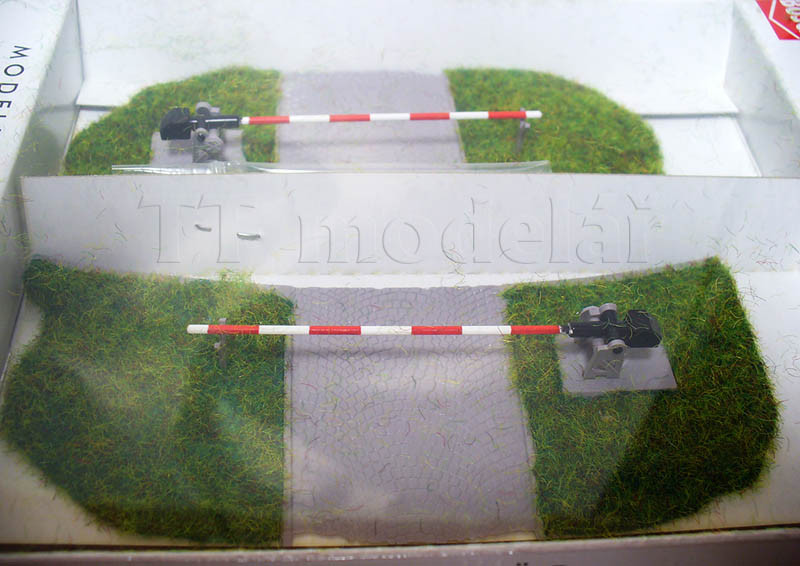 Chráněný železniční přejezd, poloviční závory, TT, Auhagen 43645