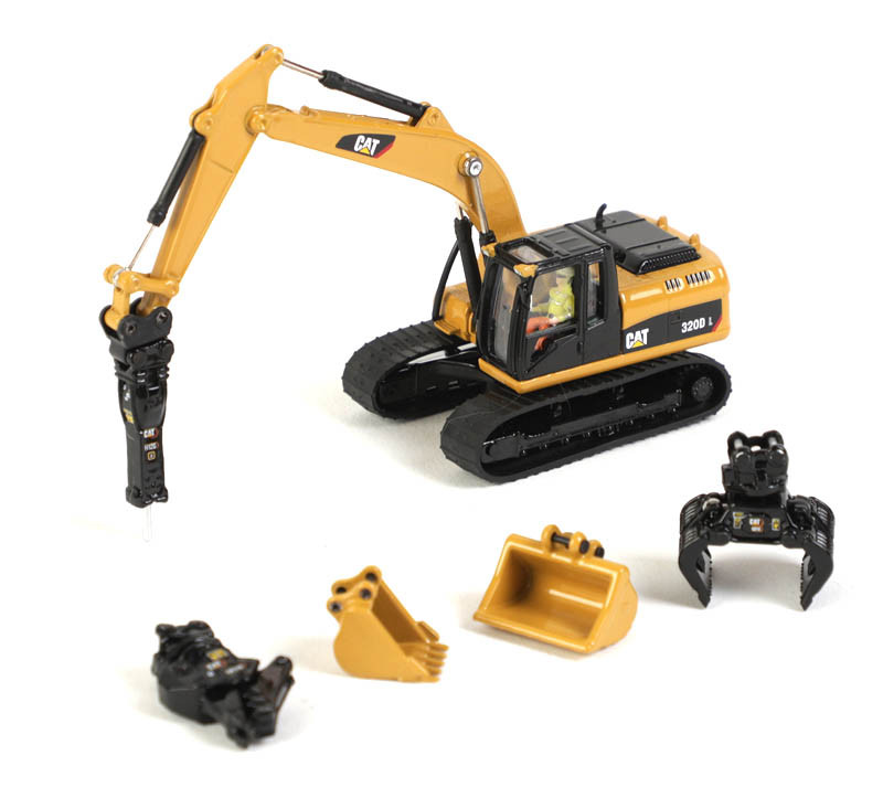Pásový bagr CAT 320D L s extra násadami, H0, Diecast Master 85652
