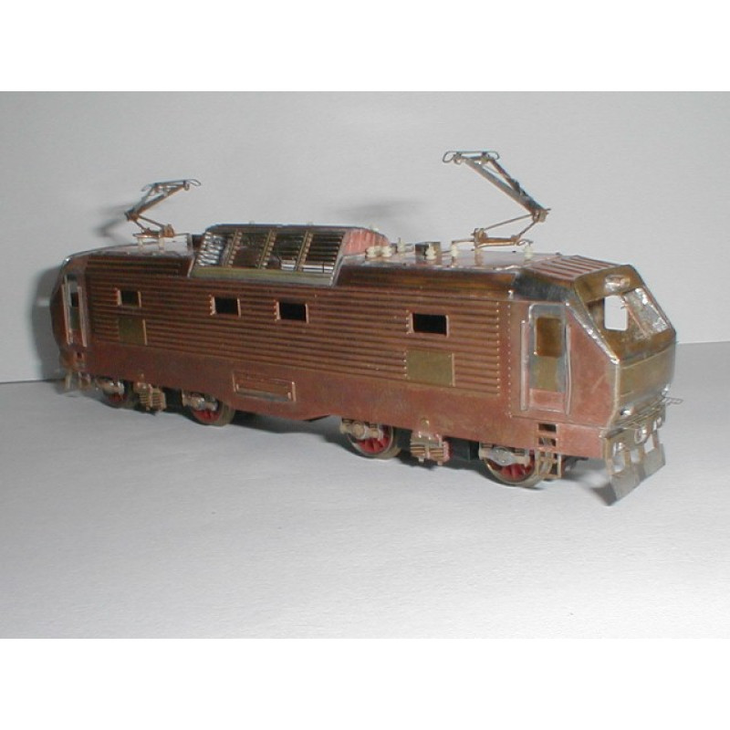 Stavebnice skříně lokomotivy a sběračů z leptaného plechu a obtisk s popisem.
