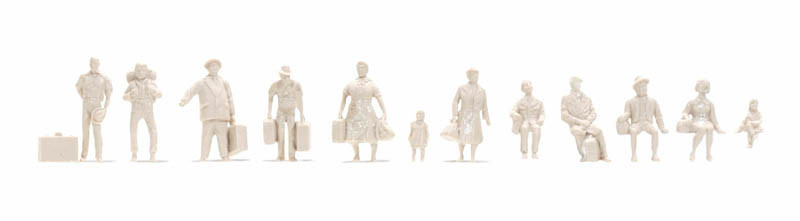 Figurky cestujících, 1:100, nebarvené, řada pro architekty, Noch 16001