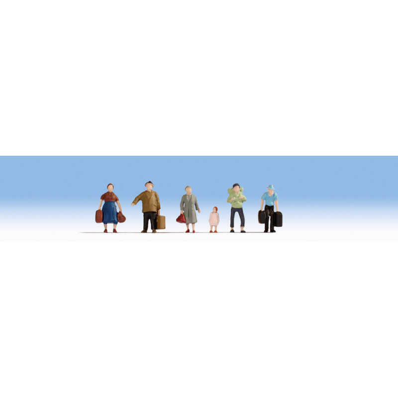 Šest figurek cestujích se zavazadly