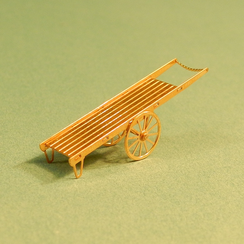 Lept dvoukolové káry, často používané v dřívějších dobách na přepravu zavazadel a dalších předmětů nejen na železničních nástupištích, ale i ve městech. Jistě znáte nostalgii filmů jako třeba Adéla ještě nevečeřela...., ale v některých nádražních koutech byly opřené ještě nedávno. Toto provedení je s plošinou vyplněnou latěmi.