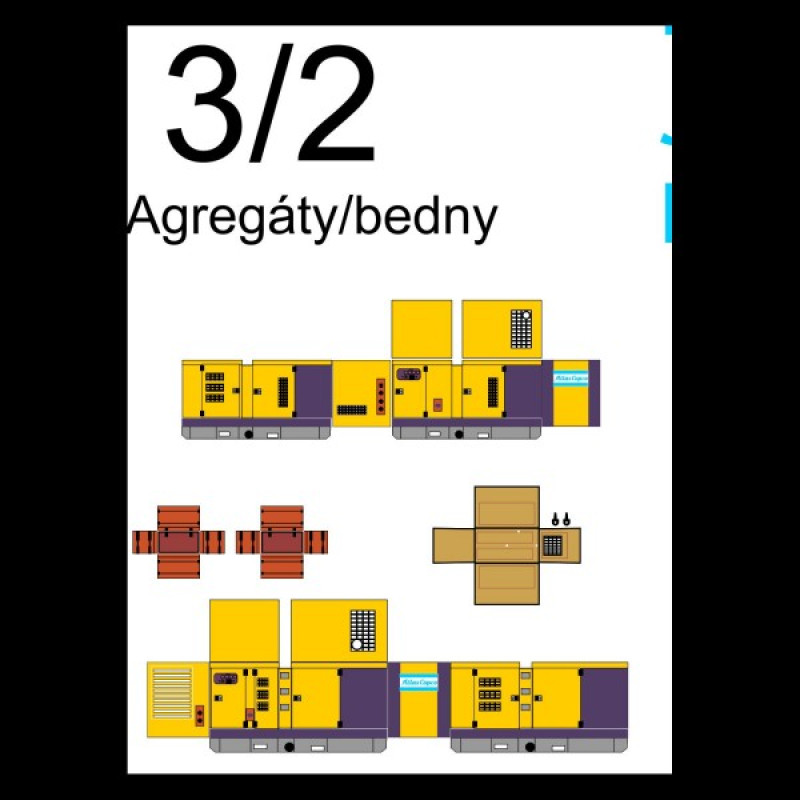 2ks nových agregátů, jeden starý a dvě pracovní bedny