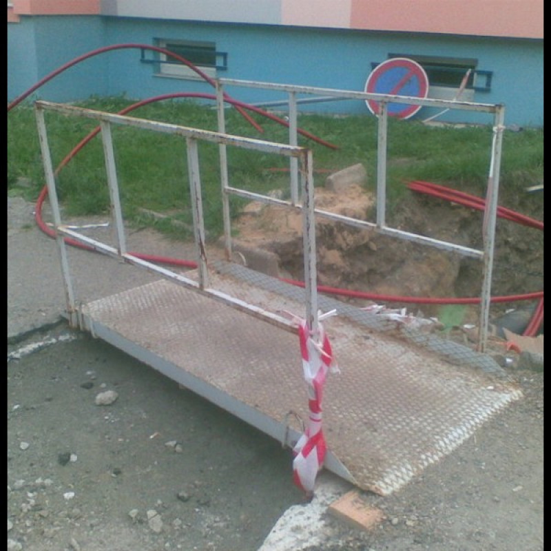 Leptaná stavebnice provizorního přechodu přes výkop apod. Jednoduchá stavebnice vhodná i pro začátečníky. Mosazný plech tl. 0,2 mm.