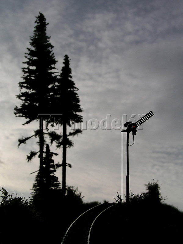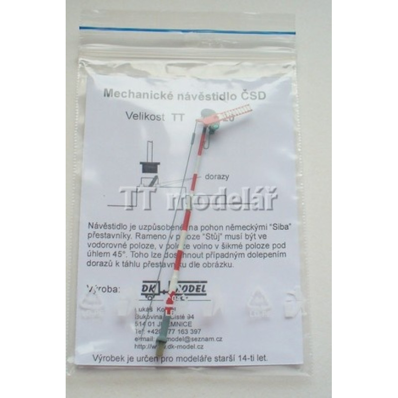 Model jednoramenného mechanického návěstidla ČSD/ČD (montáž do přestavníku německé f. SIBA). Sestavené a nabarvené návěstidlo bez přestavníku.