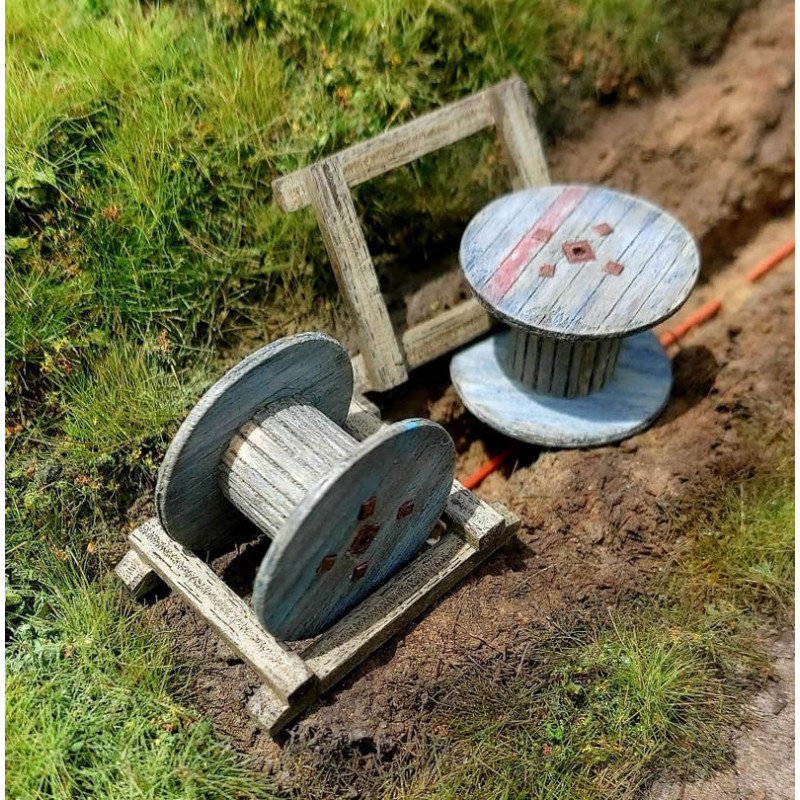Balení ve velikosti TT obsahuje 2 ks dřevěných kabelových cívek ve formě stavebnice.Jako materiál je použita dřevěná dýha dřevěná překližka. Dřevo není nijak patinováno a konečná povrchová úprava tak záleží na vkusu a schopnostech modeláře.