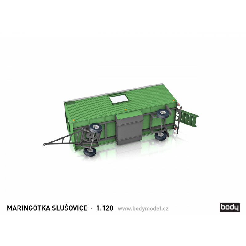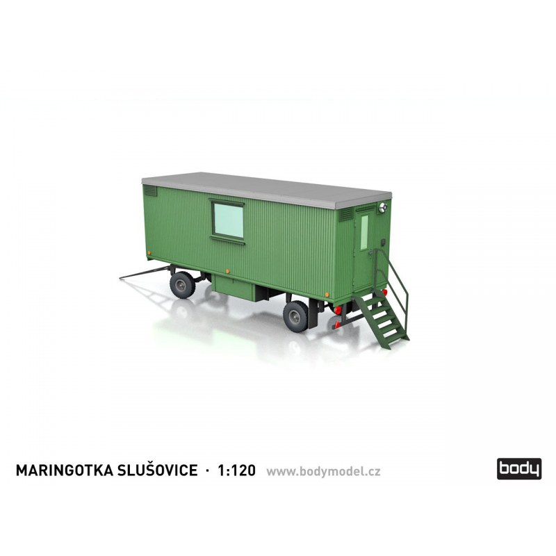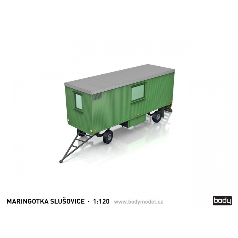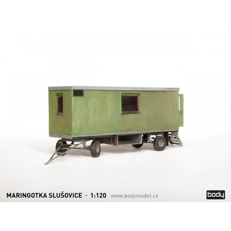 Stavebnice palubkové maringotky vyráběné v JZD Slušovice. Stavebnice je tvořena kombinací PUR odlitků a leptaných dílků. Určeno pro zkušené modeláře.