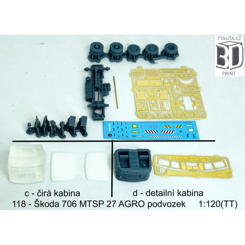 Stavebnice - Škoda 706 MTSP 27 AGRO, podvozek bez nástavby, čirá kabina, TT, Štěpnička 118c