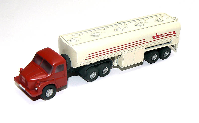 Stavebnice z resinu a čiré pryskyřice. Předloha je jeden z typických nákladních automobilů 70. - 80. let Tatra 148. Typická distribuční cistrna na pohonné hmoty národního podniku Benzina.