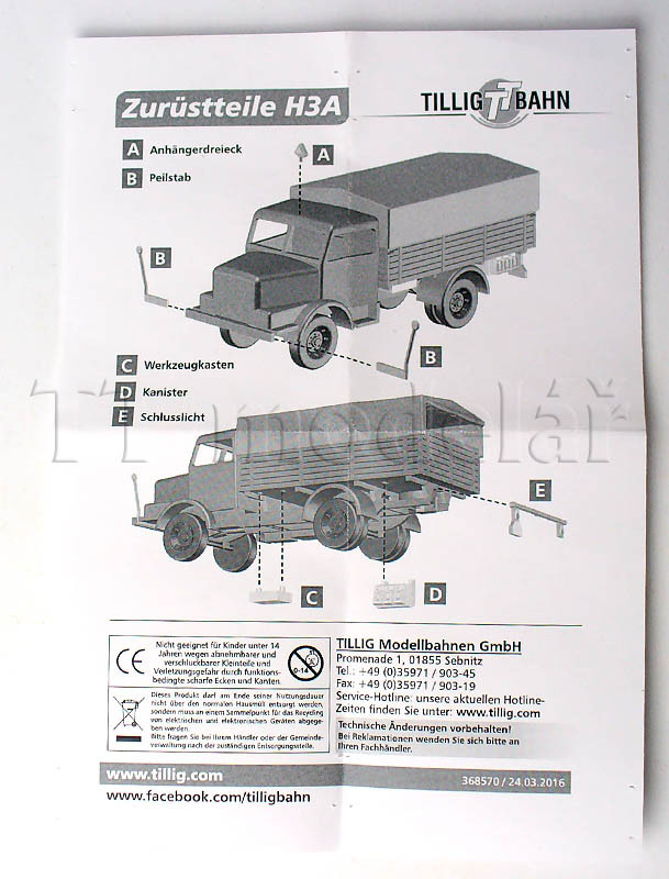 Doplňkové díly pro nákladní automobil H3A (dvě sady), TT, Tillig 07800 Doplňkové díly pro nákladní automobil H3A (dvě sady), TT, Tillig 07800