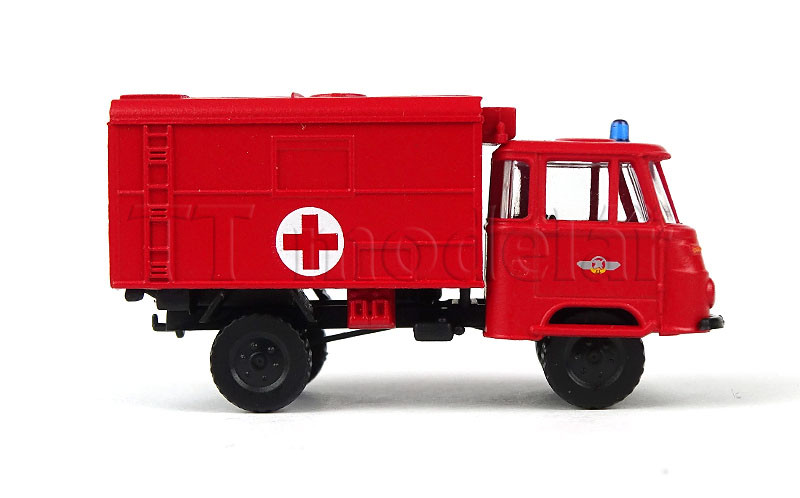 Nákladní automobil Robur LO 1801 se skříní, „Feuerwehr - Krankentransportwagen“, TT, Tillig 19035