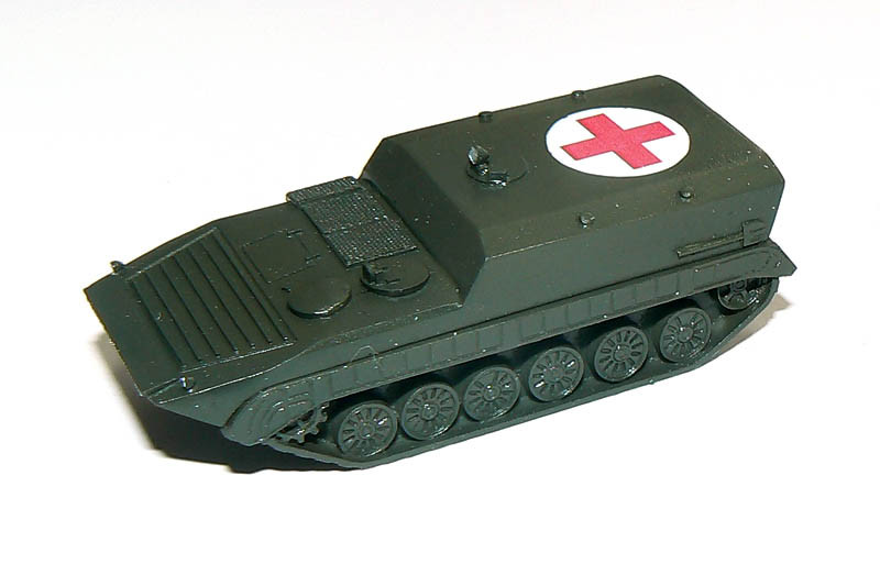 Stavebnice z resinu. Klasický kousek výzbroje bývalé Československé lidové armády ČSLA - bojové vozidlo pěchoty, neboli "bévépéčko", tedy z něj vycházející "polní sanitka" AMB S.