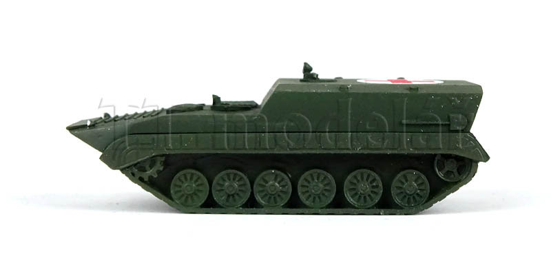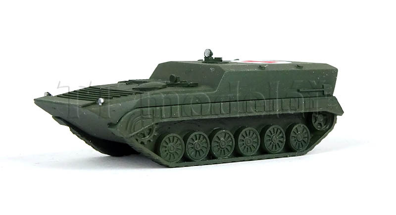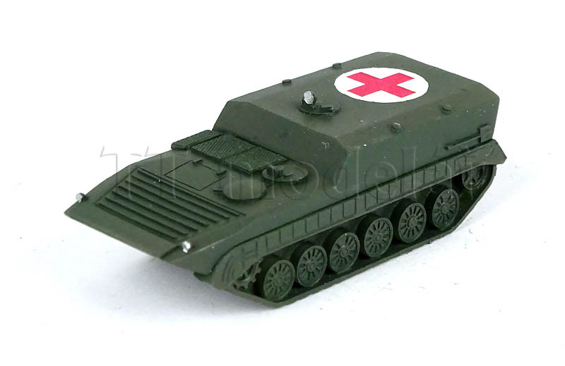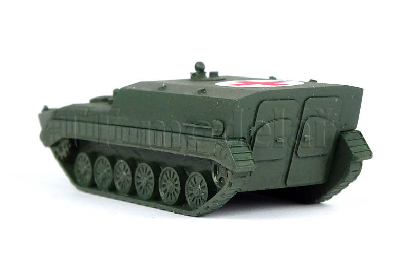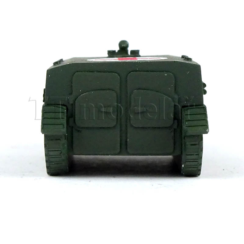 Model z resinu, stříkáno. Klasický kousek výzbroje bývalé Československé lidové armády ČSLA - bojové vozidlo pěchoty, neboli "bévépéčko", tedy z něj vycházející "polní sanitka" AMB S.
