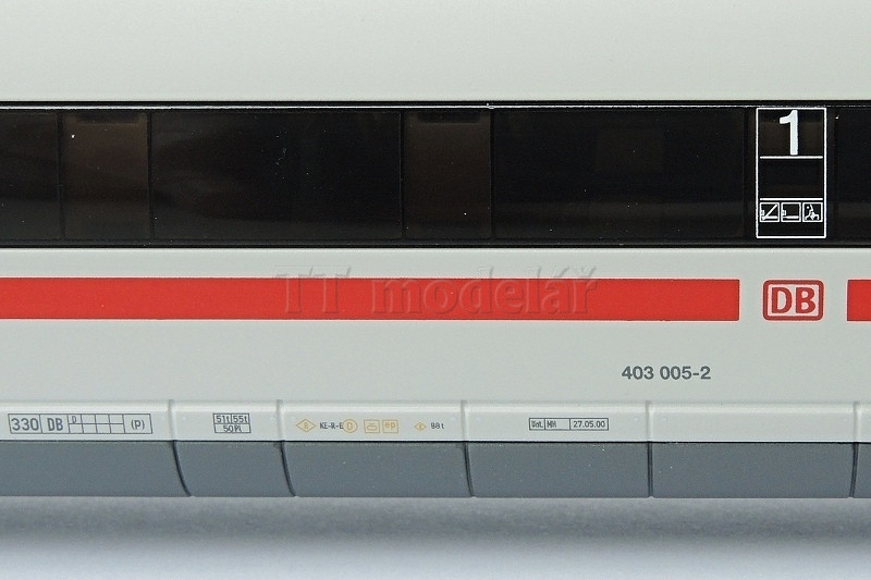Model elektrické vysokorychlostní jednotky ICE 3 společnosti DB AG, řada 403 (jednosystémová 15 kV/16,7 Hz, se dvěma sběrači). Tyto jednotky, schopné dosáhnout rychlosti 330 km/h představují u DB nový koncept s distribuovaným pohonem - poháněna je polovina vozů v jednotce. Vyrobeno bylo 50 ks jednosystémové řady 403 a17 ks vícesystémové řady 406 (označované ICE3M, ICE3MF)