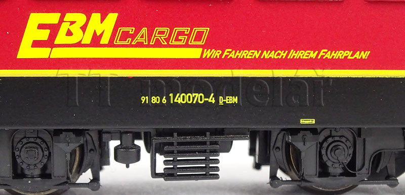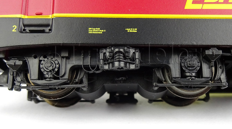 Délka modelu přes nárazníky je 135 mm. Vybaven kinematikami se šachtou dle NEM 358, motor se setrvačníky je osazen digitálním konektorem dle NEM 651 (6pinů v řadě). Osvětlení přepínané dle směru jízdy - 3 bílá/2 červená.