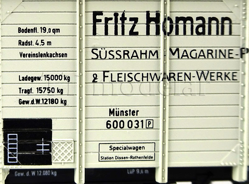 Model je dodáván s 4barevným potiskem a bílou povrchovou úpravou. Tyto vozy sloužily k přepravě margarínu.
