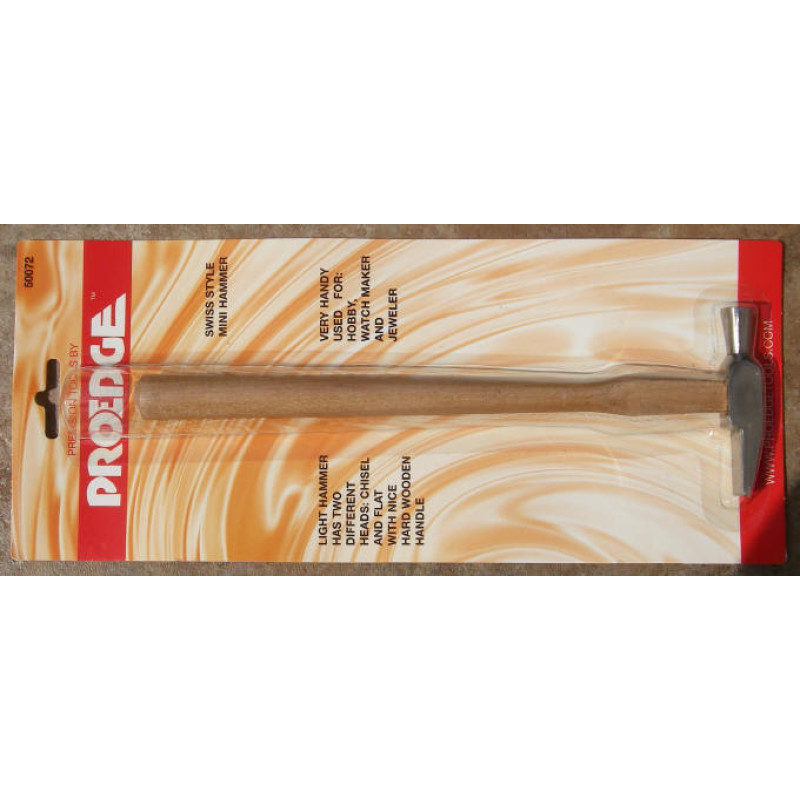 Malé kladivo pro fajnovou práci. Je dlouhé 22.5 cm a má celkovou hmotnost asi 50 gramů. Kladivo je vykované do tvaru na jedné straně s kruhovou plochou, na druhé straně se zužuje do tupé ploché špičky. Násada je z tvrdého dřeva. Kladívko je tak nejen šikovné, ale i hezké.
