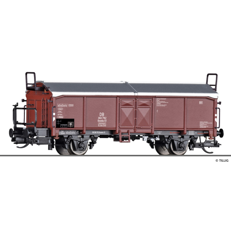 Vůz s posuvnou střechou a stěnami Kmmgks 58, DB, III. epocha, TT, Tillig 17655
