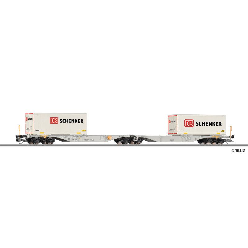 Kontejnerový vůz Sggmrs 747 s nákladem 2 kontejnerů, DB AG, VI. epocha, Tillig 18076