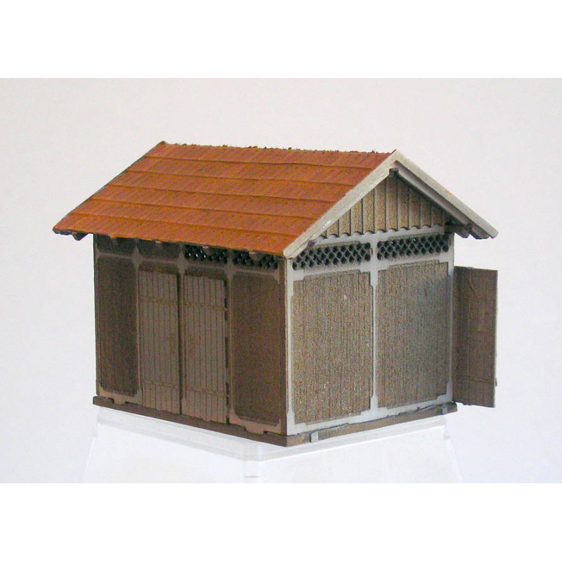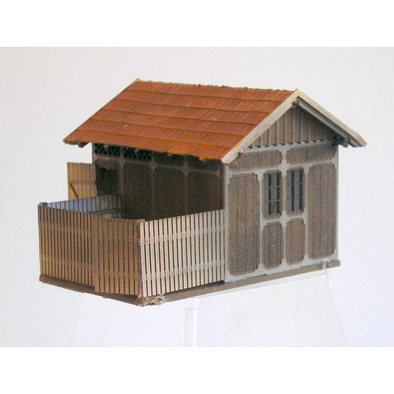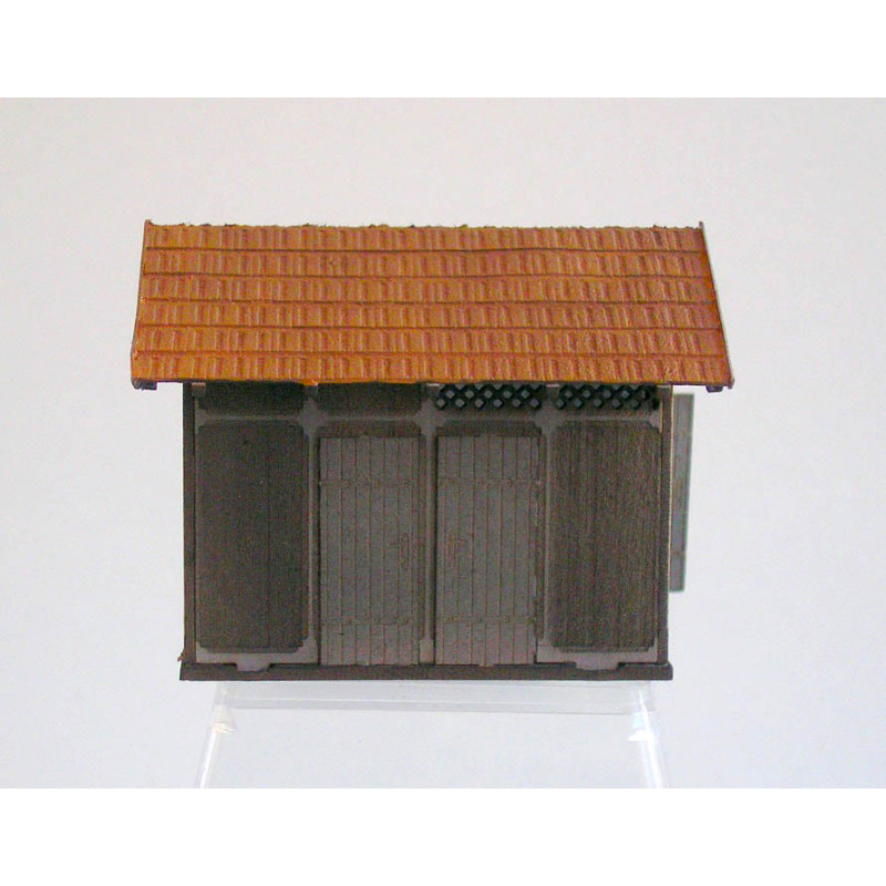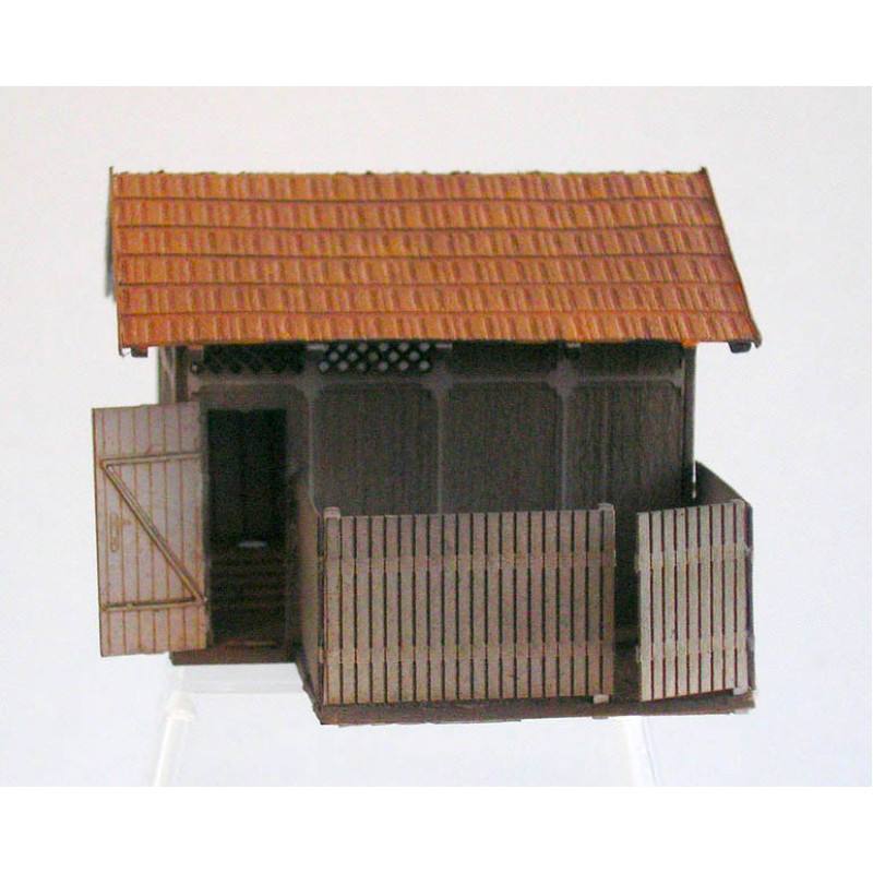 Podružná budova pro drobné domácí zvířectvo a se záchodky (i pro cestující) podle typového listu 19a/H se stavěla k jednoduchému strážnímu domku. Jednalo se kůlnu na betonových nebo kamenných základech se žumpou pro záchod a chlívky pro prase nebo kozu.Stavebnice modelu je vyrobena řezáním z kartonu a polokartonu přesnou laserovou technikou a to včetně gravírovaných dílů. Střecha - gravura ve 3D – alternativně eternit nebo borovka,