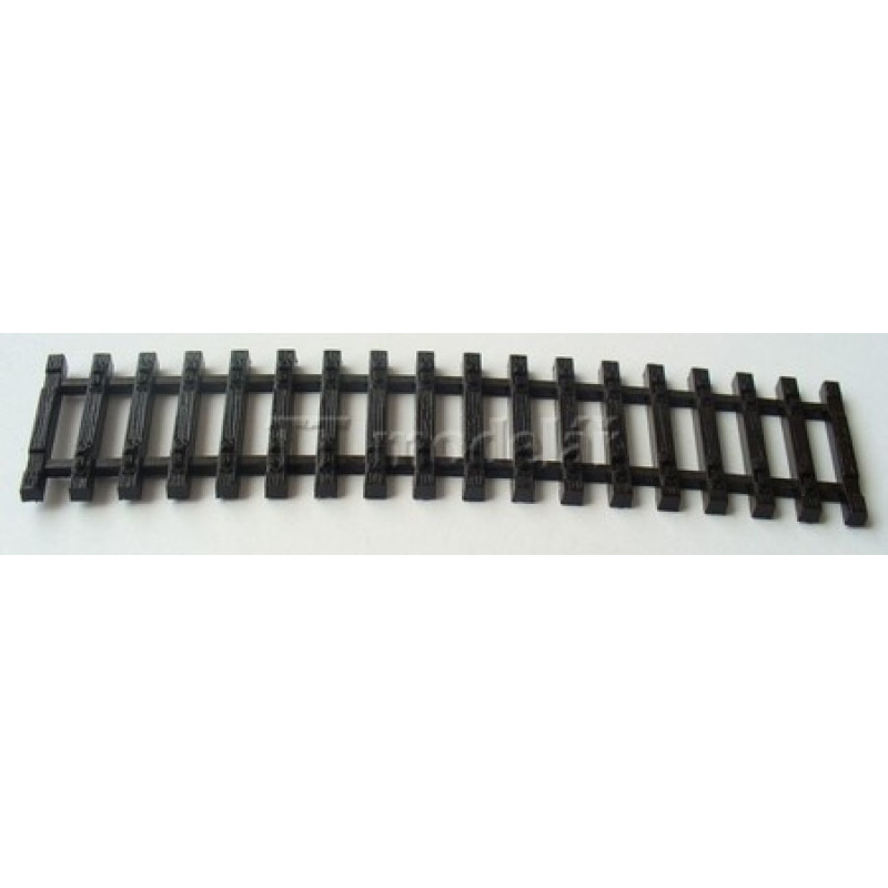 Pražcová podlož pro kolej R 22 ( 15 stupňů oblouku R 353 mm). Na krajních pražcích vynechané plošky pro nasazení spojky. Zespodu několika pražců připraveny otvory pro upevnění hřebíkem či špendlíkem, nejsou však z estetických důvodů protlačeny na povrch.