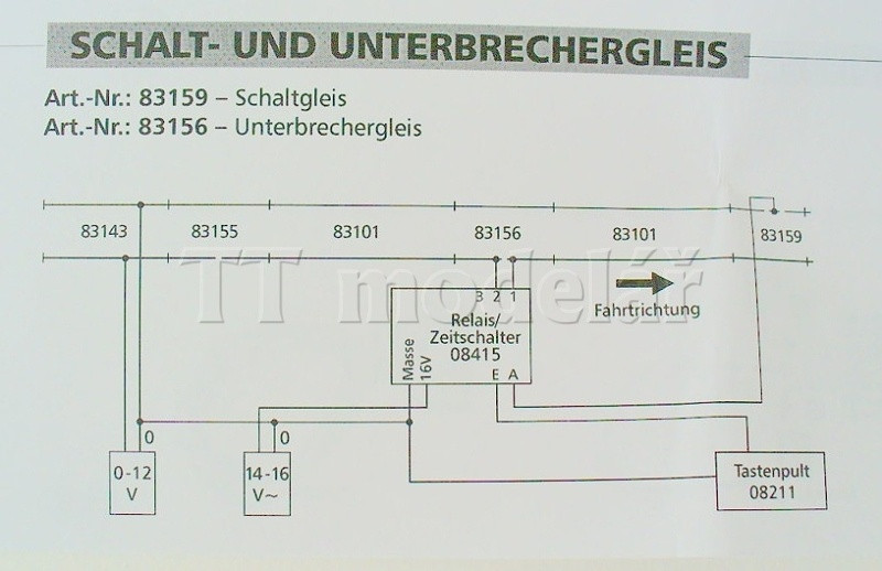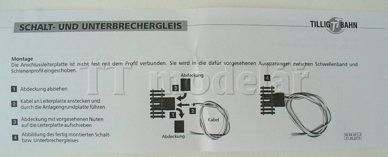 Kolej o délce 41,5 mm s krátkým izolovaným kouskem jedné z kolejnic. Z tohoto kousku je vyveden vodič, do kterého se v okamžiku průjezdu vlaku dostane napětí z koleje a toto je dále využito k sepnutí nějakého prvku (relé atd.)