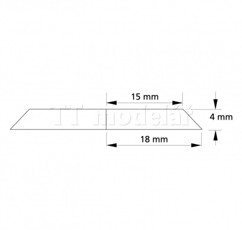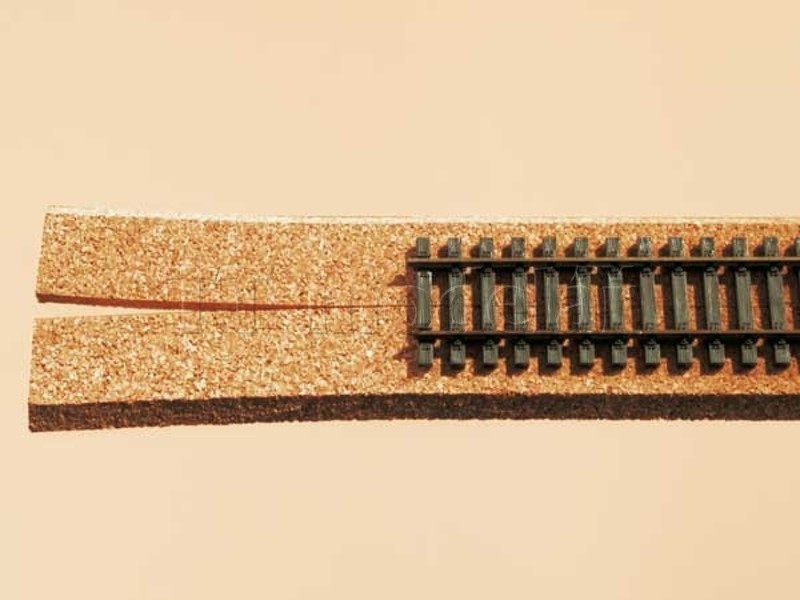 Korkové podloží pod koleje Auhagen, 4 pásy, uprostřed dělené (jednoduchá montáž dle osy), výška 4 mm, šířka 18 mm, délka pásu 500 mm, celková délka v balení 2 m.