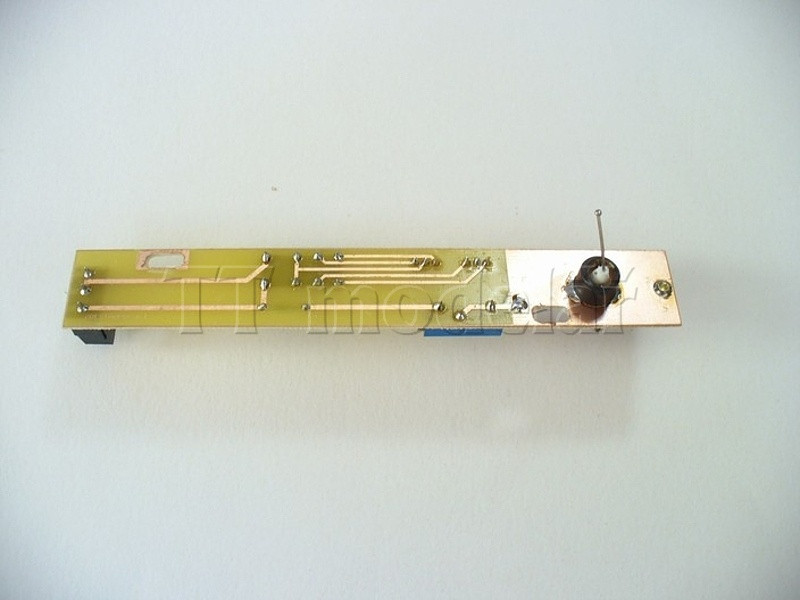 Přestavník vyráběný za použití tzv. paměťového drátku (Memory Wire), který při průchodu el. proudu mění svou délku. Přestavník je vybaven trimrem, kterým je možno upravit prodloužení v závislosti na napětí a je standardně nastaven na napětí 5 V stejnosměrných. Vhodným zdrojem napětí jsou síťové zdroje z PC. Tyto přestavníky máme použity i na skrytém nádraží na našem kolejišti a jsme s nimi spokojeni. Jsou navrženy pro tloušťku základové desky kolem 15 mm a tím pádem zdvihu 2,5 mm. Pokud je deska tenčí, tak jako to máme my (8 mm), je třeba přestavník podložit. Chod je absolutně tichý a plynulý. V jedné z poloh je však trvale pod napětím s odběrem cca 270 mA.