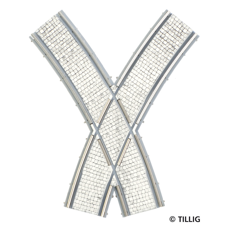 Oblouková křižovatka pravá s dlažbou, tramvajové kolejivo Luna, TT/H0m, Tillig 87168