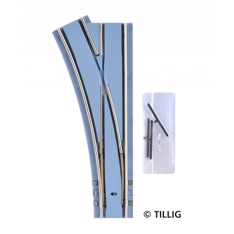 Výhybka jednoduchá pravá s asfaltem/betonem, R 204 mm, 25°, tramvajové kolejivo Luna, TT/H0m, Tillig 87099