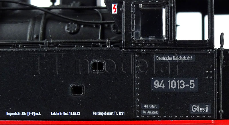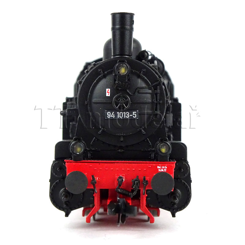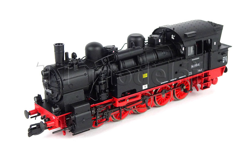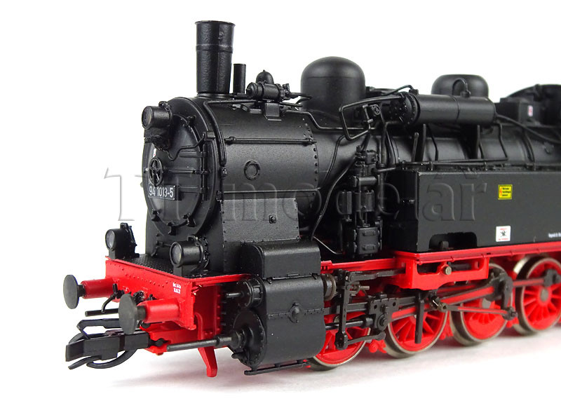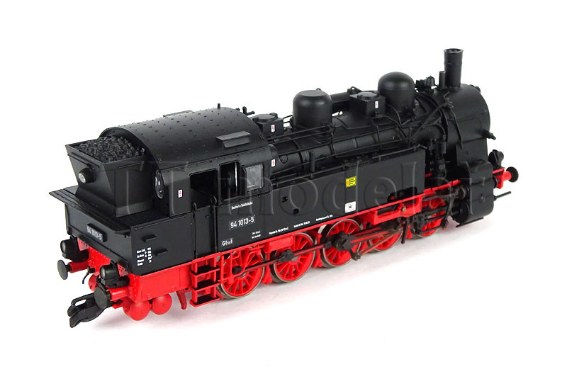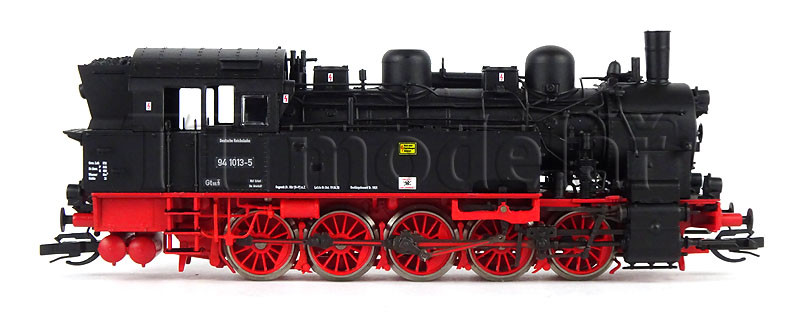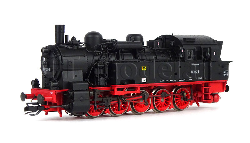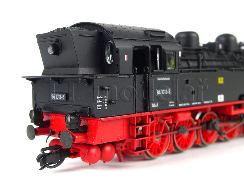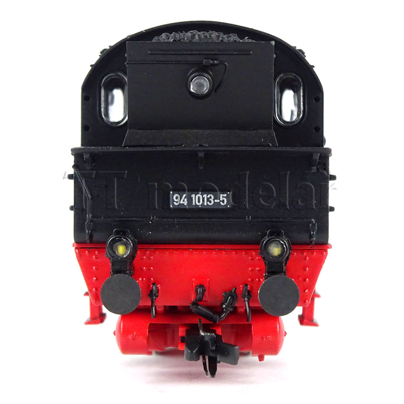 Lokomotiva řady 94.5 DR se svařovanými vanami na vodu, Riggenbachovou brzdou, kulatou střechou budky a zvýšeným tendrem.
