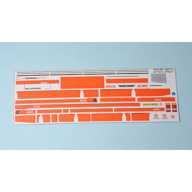 Obtisky obsahují základní univerzální motivy (přední masky, SPZ a další drobnosti). Z rozvinovacího seznamu můžete objednat obtiskové pruhy, které obsahují vše potřebné na obtisknutí bíle nastříkaného autobusu.