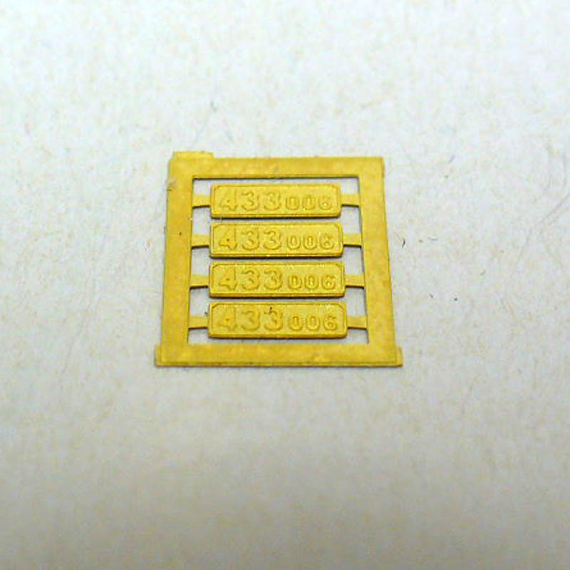 Čtyři kusy řadových tabulek na parní loko 433.006, vyleptané do mosazného plechu.