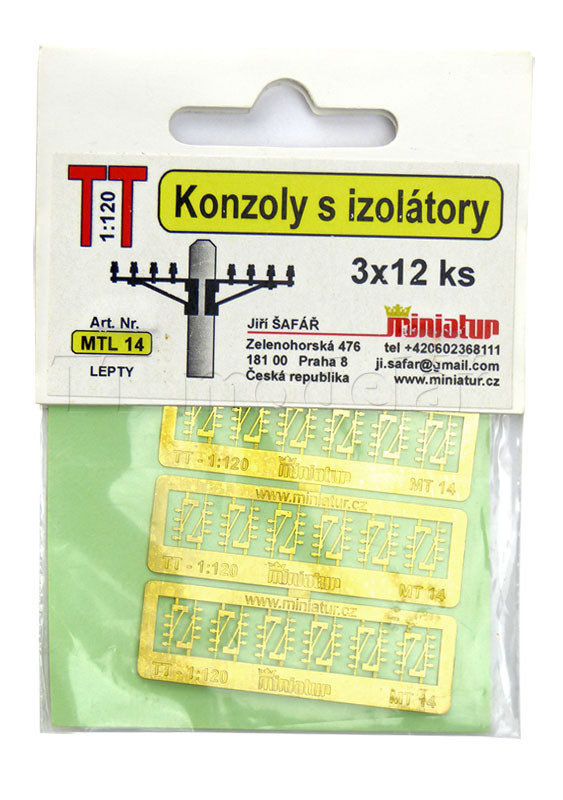 Lepty konzol s 8 izolátory pro telegrafní vedení, TT, Miniatur MTL14
