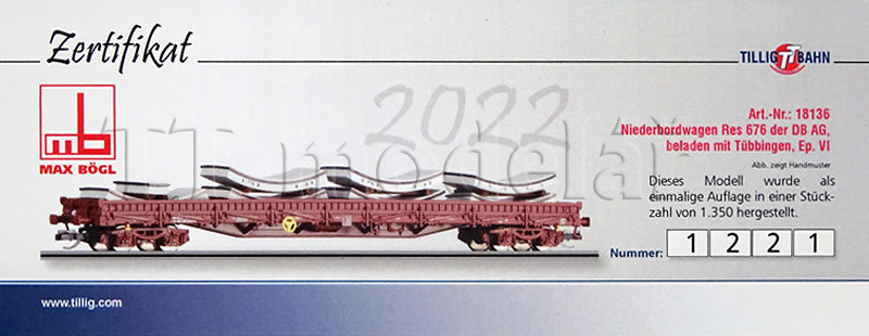Nízkostěnný vůz Res 676, DB AG, s nákladem segmentů, VI. epocha, TT, jednorázová série, DOPRODEJ, Tillig 18136 E