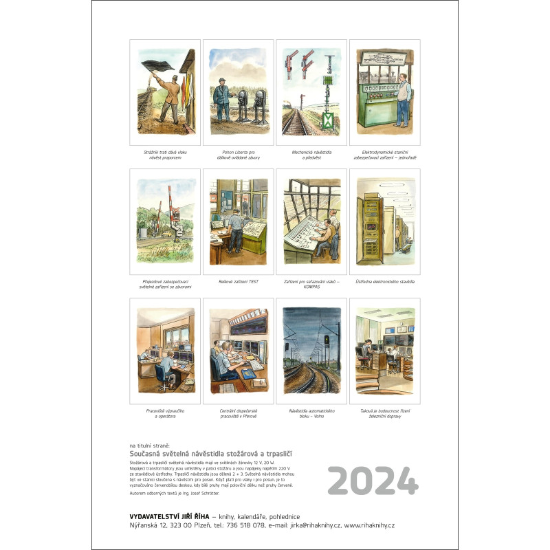 Druhý z dvojice kalendářů přibližuje historii zabezpečení železniční dopravy jenom stručně, je více zaměřený na současnost, představuje pracoviště operátorů, návěstidla automatického bloku a centrální dispečerská pracoviště. Kromě obrázků jsou na každém listu opět vysvětlující textíky od Ing. Josefa Schröttera. Na předposlední straně je krátké curriculum obou autorů. Kalendář vychází k nedožitým devadesátinám Jiřího Boudy (1934–2015).