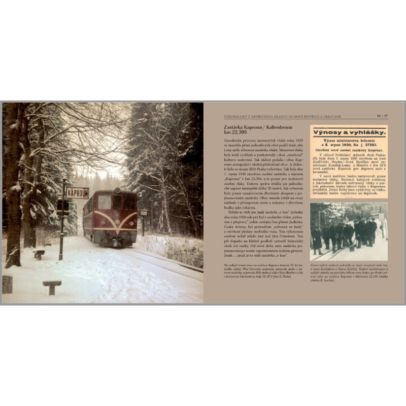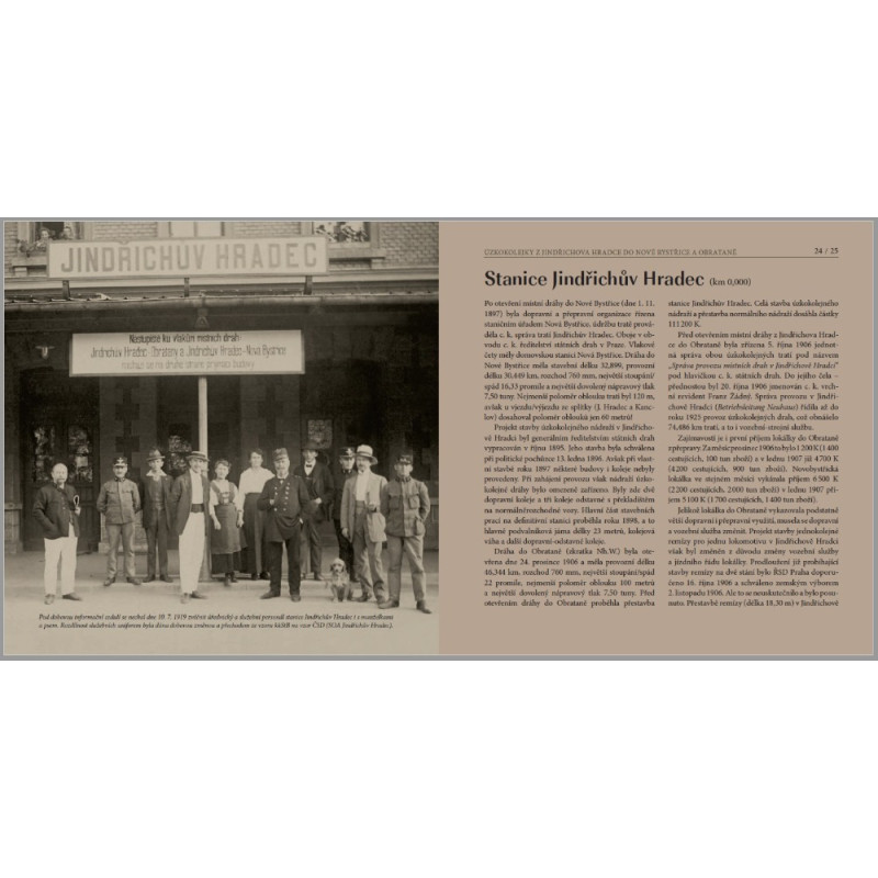 Jindřichohradecké úzkokolejky, ačkoli ani na našem území nejsou jedinou dodnes přeživší úzkorozchodnou dráhou rozchodu 760 mm, nejsou jen dráhou sloužící cestujícím a přepravě nákladů, ale i technickým a kulturním dědictvím a fenoménem. Třiatřicetikilometrová trať Jindřichův Hradec – Nová Bystřice (otevřená už 1. listopadu 1897 coby státem garantovaná) a šestačtyřicetikilometrová trať Jindřichův Hradec – Obrataň (provoz zahájen 24. prosince 1906 pod zemskou garancí) zmapované převážně historickými snímky, plánky a pohlednicemi ožívají na stranách knihy Richarda Cily a Martina Navrátila ÚZKOKOLEJKY Z JINDŘICHOVA HRADCE DO NOVÉ BYSTŘICE A OBRATANĚ. Záměrně volíme slovo ožívají, protože pro insolvenci provozovatele dráhy a drážní dopravy byl na jindřichohradeckých úzkokolejkách v roce 2022 zastaven provoz a přežití této jedinečné železnice je vážně ohroženo.