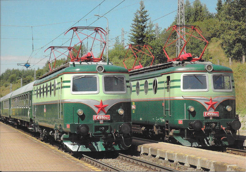 2023122 Pohlednice, Elektrické lokomotivy E 499.085 a 062 v žst. Štrba, Letohradský železniční klub