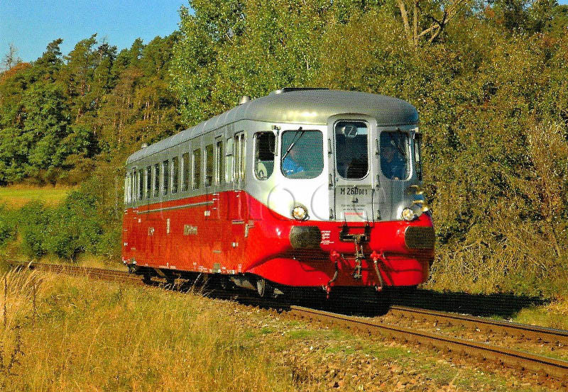 2021104 Pohlednice, Motorový vůz Stříbrný šíp M260.001 u Lužné u Rakovníka, Letohradský železniční klub