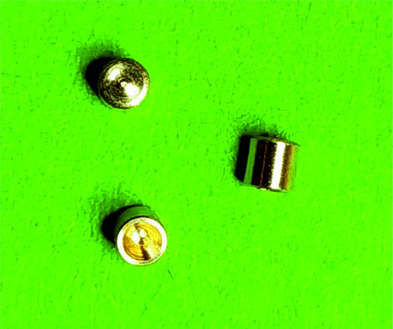 Mosazná ložiska do vozů pro uložení dvojkolí s hrotem.