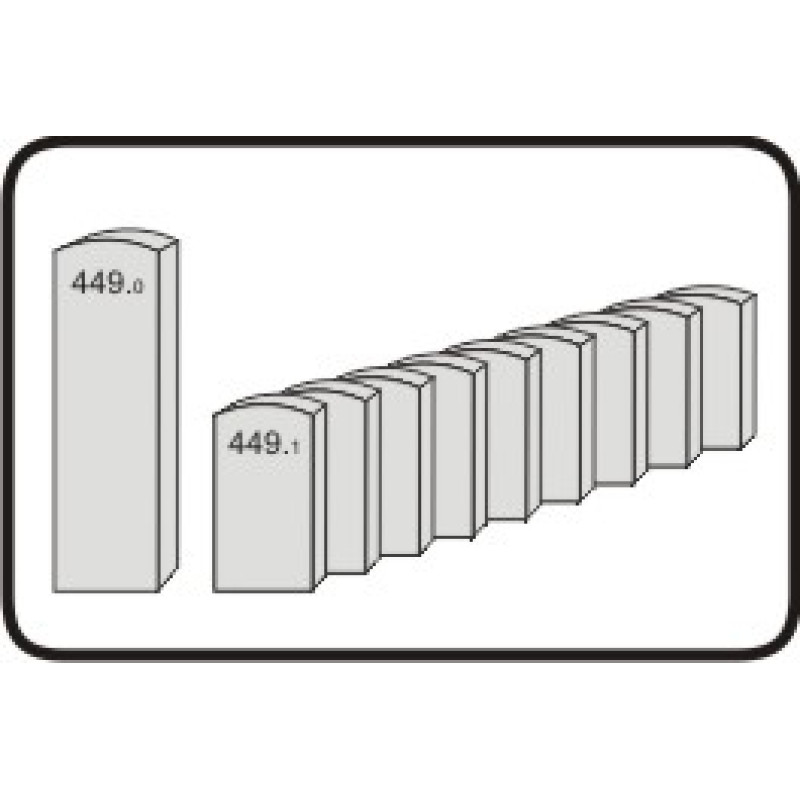 Stavebnice betonových staničníků. Sada obsahuje jeden kilometrovník a devět hektometrovníků.